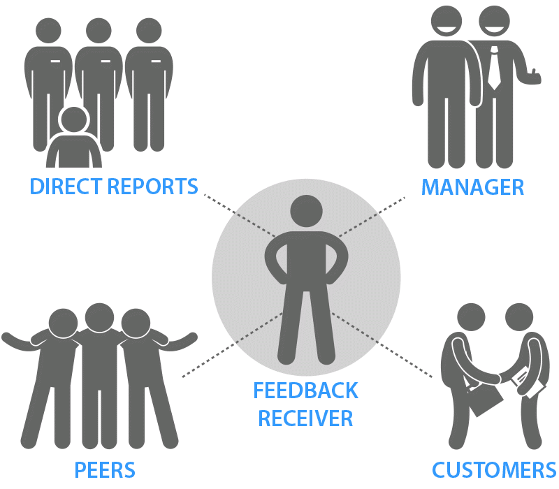 Competency questionnaires (or "competency tests") are standardized measuring instruments. Most often, information solicited in a 360-degree feedback process will include feedback from an employee's subordinates, peers (colleagues), and supervisor(s), as well as a self-evaluation by the employee themselves. Such studies, in which we get information about the candidate's workplace behaviour from different perspectives, are referred to as a 360-degree.